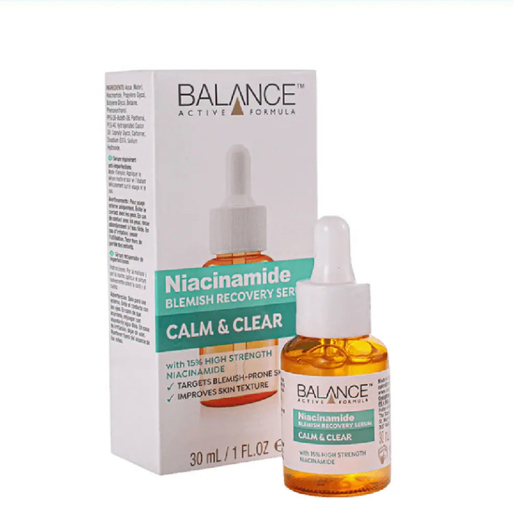 سرم نیاسینامید بالانس، یک سرم کنترل کننده چربی با کیفیت برای پوستهای چرب و مستعد جوش است که از بروز آکنه جلوگیری کرده و موجب کوچک تر شدن سایز منافذ میشود؛ همچنین تسکین دهنده و التیام بخش بوده و به تقویت سد دفاعی پوست میپردازد. نیاسینامید اسید بالانس حاوی 15% نیاسینامید یا همان ویتامین B3 است که به درمان آکنههای فعال پرداخته و با بهبود بافت پوست به صاف و یکدست شدن آن کمک میکند. دارای خاصیت آنتی باکتریال و ضدمیکروبی است و فعالیت باکتریهای مضر و مولد آکنه را متوقف می کند؛ همچنین به بازسازی سلولهای پوستی میپردازد.