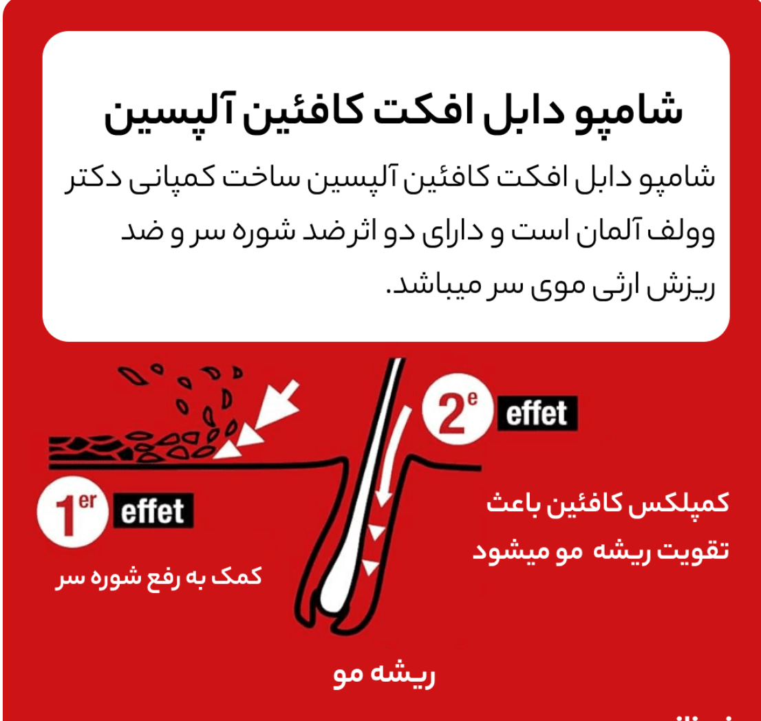 شامپو دابل افکت کافئین آلپسین از ریزش مو ارثی جلوگیری میکند. با رفع شوره های سر راه برای تاثیر گذاری کمپلکس کافئین باز میشود. این شامپو حاوی کافئین با غلظت بالاست که هنگام شستشو به ریشه مو ها نفوذ میکند.